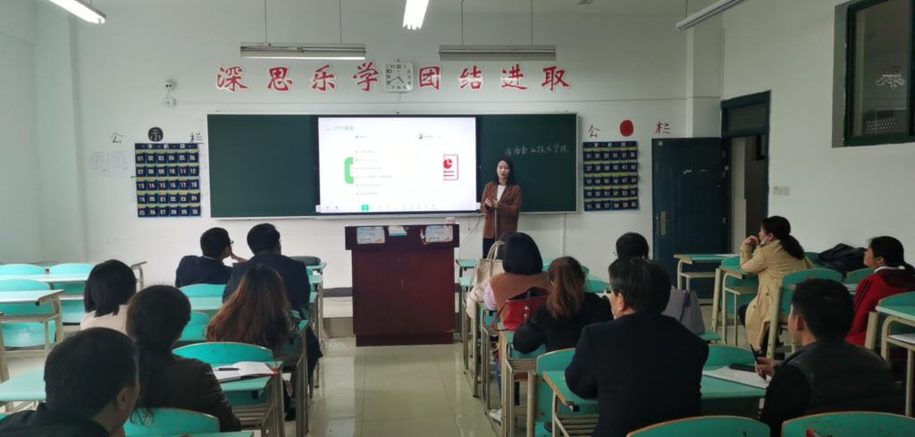 4月13日下午,教务处组织今年参加教师教学能力大赛的部分教师在学校中区1210教室参加智慧黑板操作培训。
