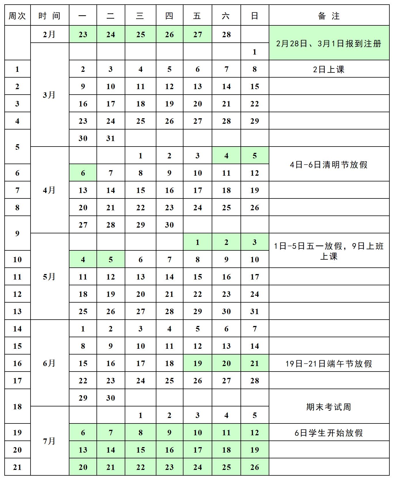 淮南职业技术学院2025一2026学年第二学期校历