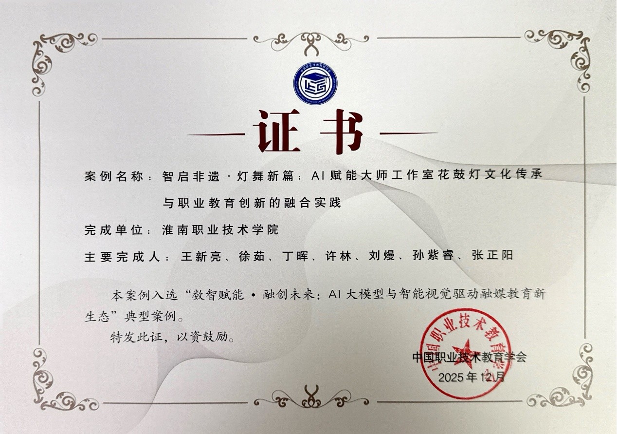此次入选,标志着学校在“数智赋能”推动教学改革方面取得系统性成果。近年来,经济管理学院紧扣数字经济脉搏,以“数智赋能”为核心,积极对接区域产业升级需求,持续探索职教新路径。在大数据与会计等专业建设中,学院创新构建了“四维联动、五阶递进”人才培养模式,通过联合政、企、行多方协同制定人才标准,引入真实项目,形成了“认知—基础—融合—实践—创新”五阶递进式培养链,切实推动了教育链与产业链的有机衔接。由王新亮团队申报的《智启非遗·灯舞新篇》AI赋能文化传承项目,创新运用AI动作识别与智能视觉技术,助力国家级非遗“花鼓灯”的教学与传承,成功打造了“技术+文化+职教”融合育人新模式,获得评审高度评价。
